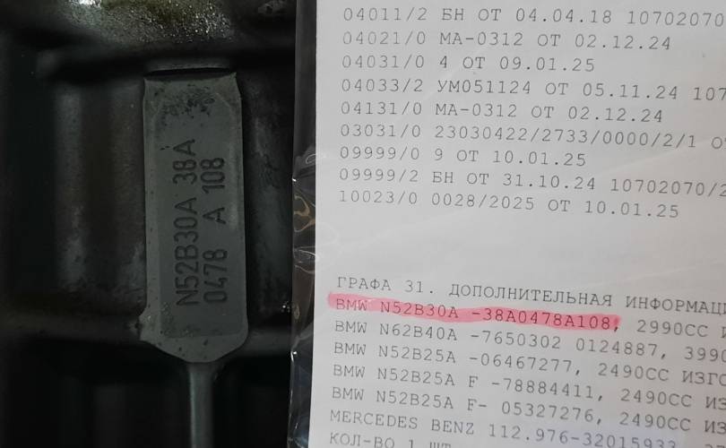 Видео запуска перед разбором, эндоскопию, а также "живые фото и видео" - направим по запросу. Комплектность отображена на фотографиях. Документы (ГТД, ДКП) в комплекте. Гарантия при установке на нашем сервисе 14 дней.