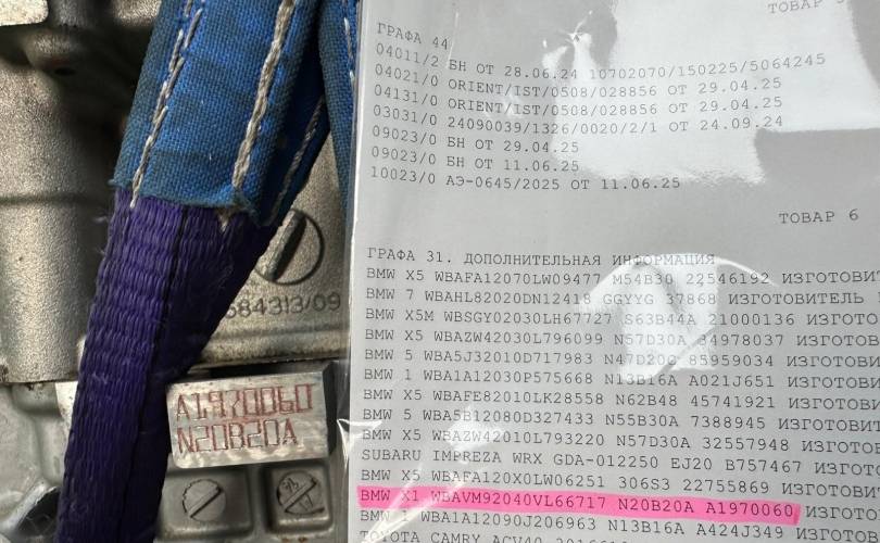 Видео запуска перед разбором, эндоскопию, а также "живые фото и видео" - направим по запросу. Комплектность отображена на фотографиях. Документы (ГТД, ДКП) в комплекте. Гарантия при установке на нашем сервисе 14 дней.
