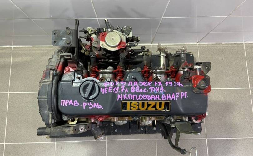 Снят с Форд Лазер FX 1994 год (Ford Laser FX 1994 г.) двс 4EE1 1.7 л., 88 л. с., ДИЗЕЛЬ, МКПП пятиступенчатая, передний привод, кузов легковой седан BHA7PF, правы руль, по запчастям