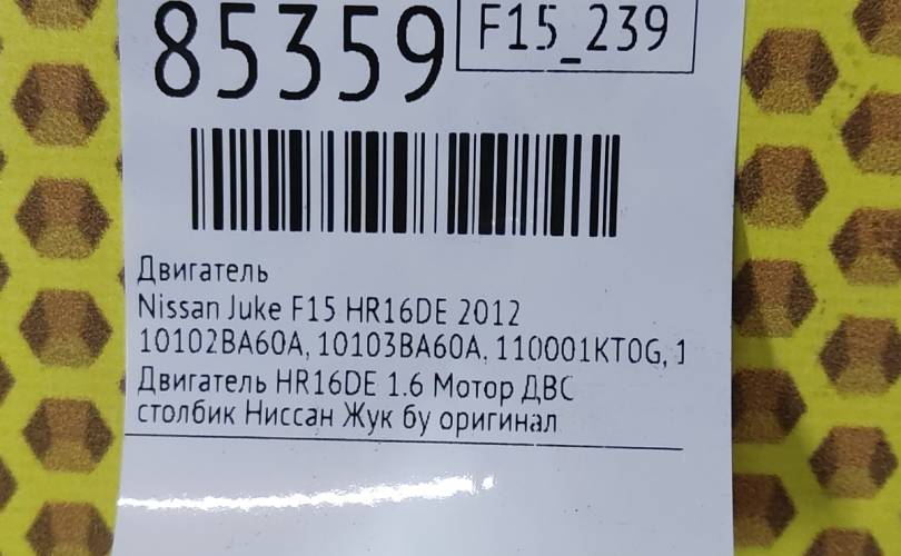 Запчасть снята с: Nissan Juke 2012 F15 MR16DDT