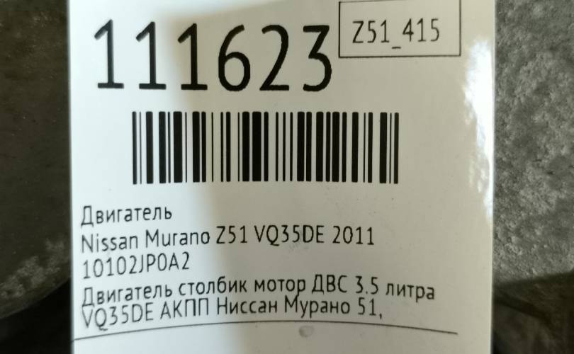 Двигатель Nissan Murano 2011 10102JP0A2 Z51 VQ35DE
