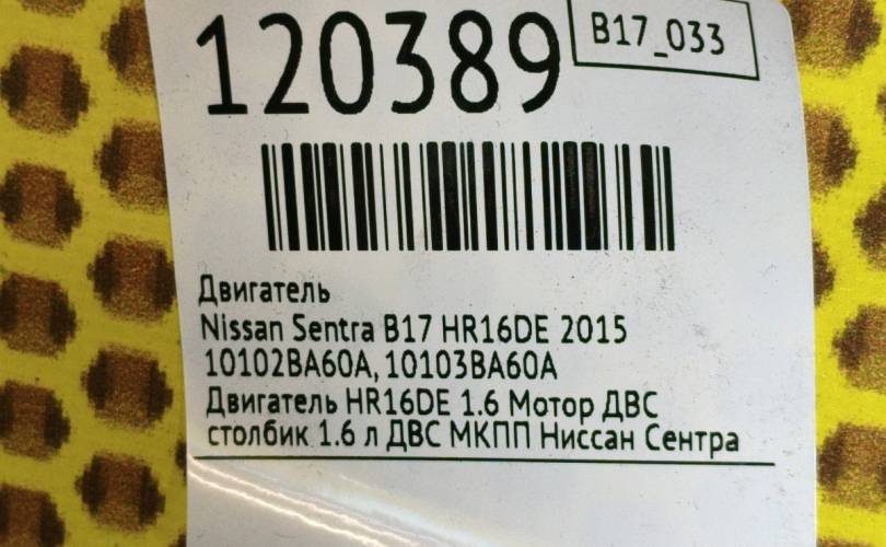 Двигатель Nissan Sentra 2015 10102BA60A B17 HR16DE