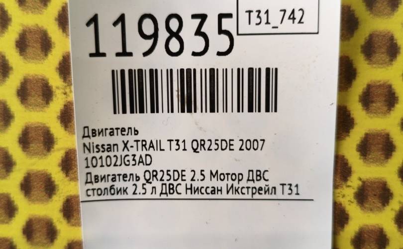 Двигатель Nissan X-TRAIL 2007 10102JG3AD T31 QR25DE