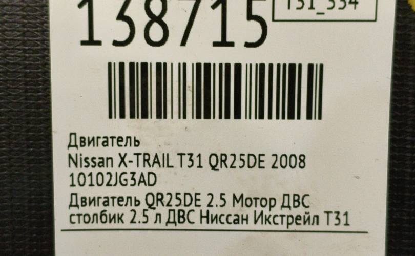 Двигатель Nissan X-TRAIL 2008 10102JG3AD T31 QR25DE