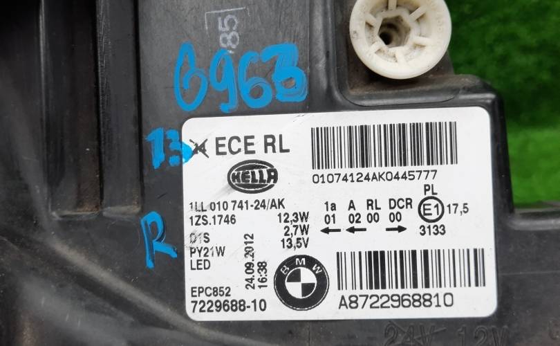 Фара BMW 1 series 13.10.2012 63117296912 F20 N13B16A, передняя правая