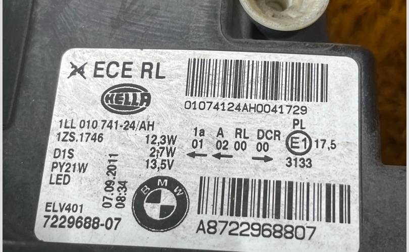 Фара Bmw 1-Series 2011 63117296912 F20 N13B16A, правая