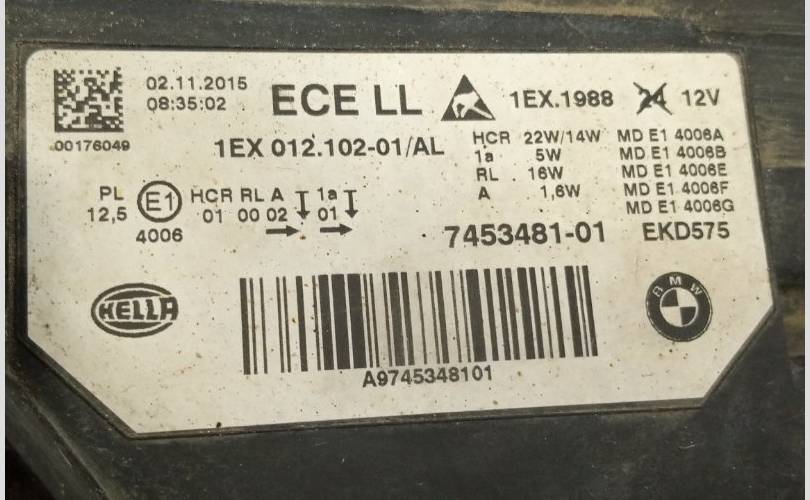 Фара BMW 3 series 2015-2020 745348101 F30/F31, передняя левая