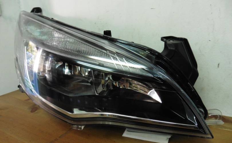 Фара черная (темная) с хромированной полосой с дневными ходовыми огнями (не диодная), правая рестайлинг, новая, неоригинальная. Подходит для автомобиля Opel Astra J (Астра Джей) хэтчбек (5дверей), седан, универсал с 2012 по 2016 год выпуска.