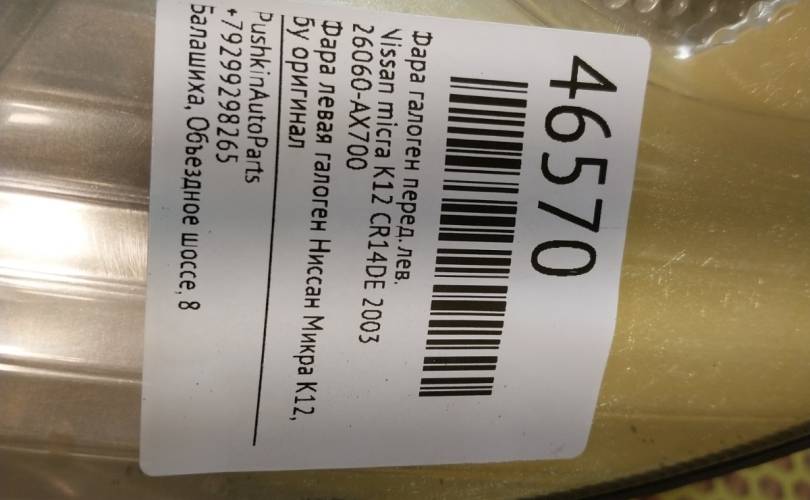 Фара галоген Nissan micra 2003 26060AX21B K12 CR14DE, передняя левая