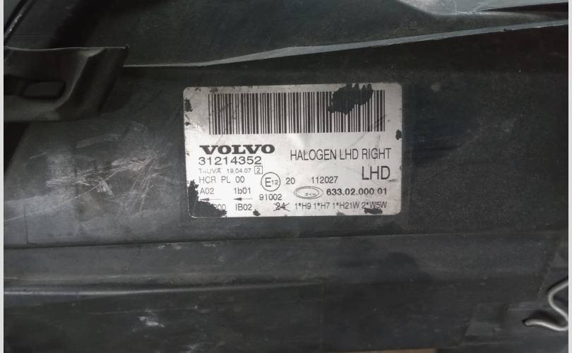 Фара галогеновая Volvo S80 31214352, правая
