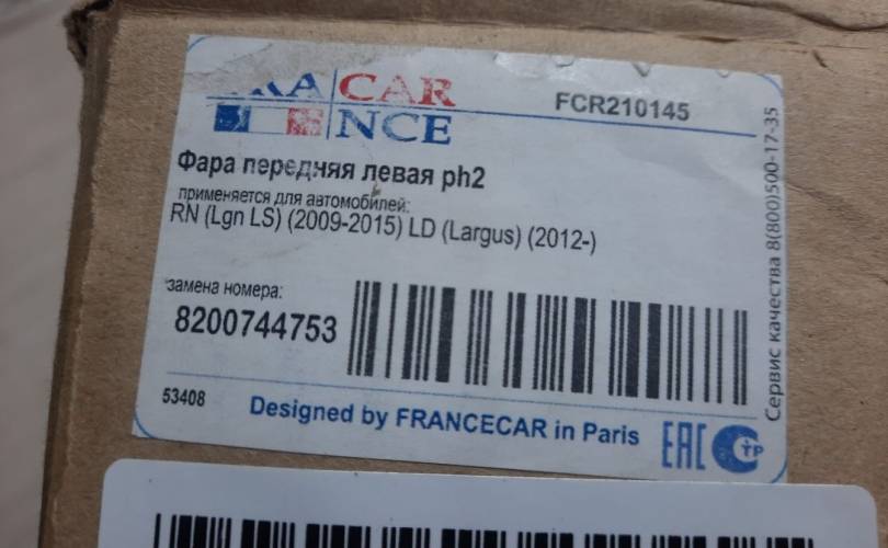 Фара левая для Renault Logan 2005-2014