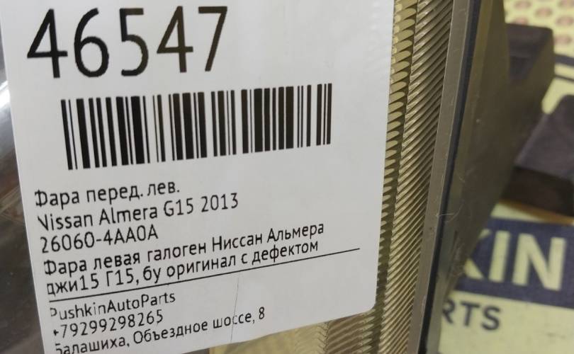 Фара Nissan Almera 2013 260604AA0A G15, передняя левая