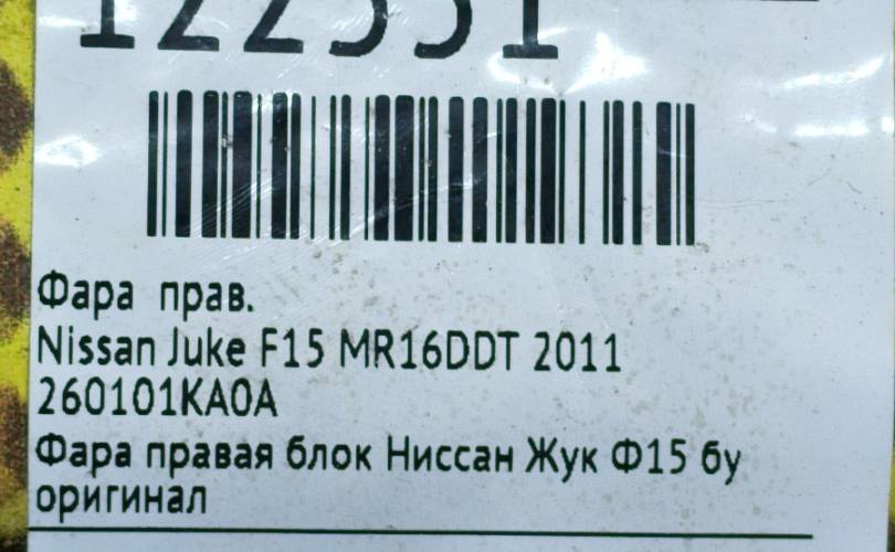 Фара Nissan Juke 2011 260101KA0A F15 MR16DDT, правая