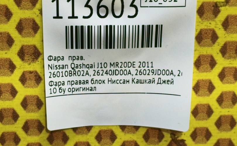 Фара Nissan Qashqai 2011 26010BR02A J10 MR20DE, правая