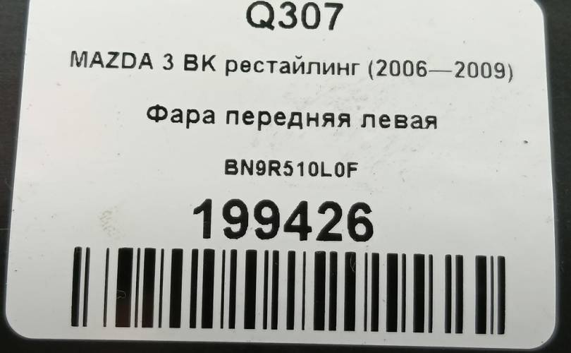 Фара передняя левая на MAZDA 3 BK рестайлинг (2006—2009) BN9R510L0F