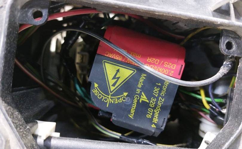 Линза, ксенон, адаптивная, царапины, микротрещины, переклеено стекло, дефект проводки. болтается отражатель, грязь внутри