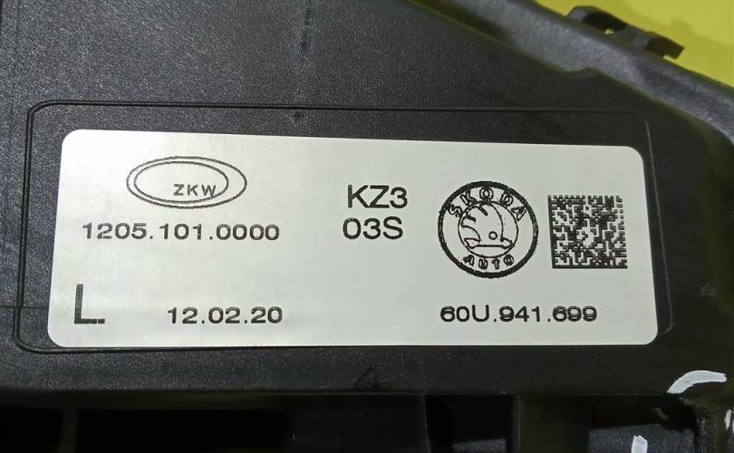 Фара противотуманная левая Skoda Rapid 2019 60U941699 906
