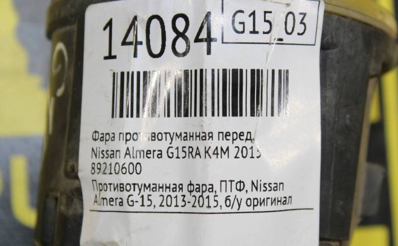Фара противотуманная Nissan Almera 2015 89210600 K4M, передняя