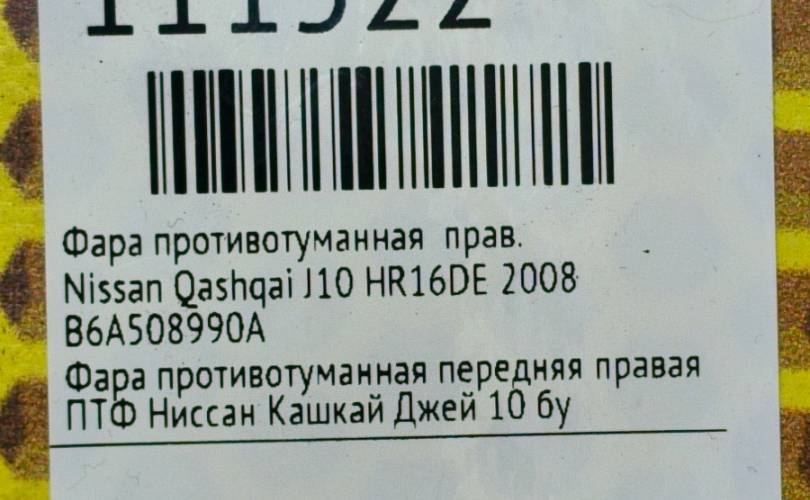 Фара противотуманная Nissan Qashqai 2008 B6A508990A J10 HR16DE, правая