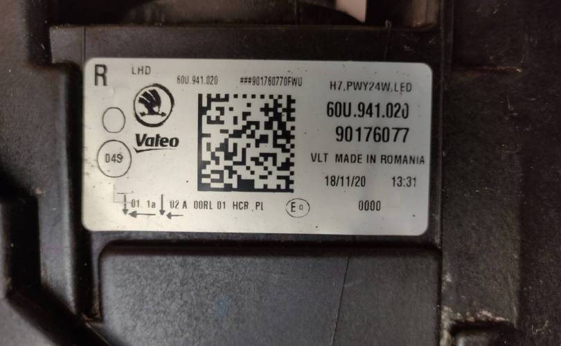 Фара Skoda Rapid 2020-нв