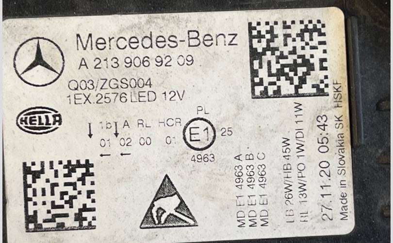 Запчасть снята с: Mercedes-Benz E-klasse 2016-2021 W213