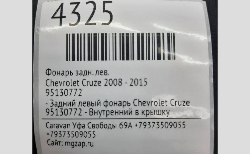 - Задний левый фонарь Chevrolet Cruze 95130772