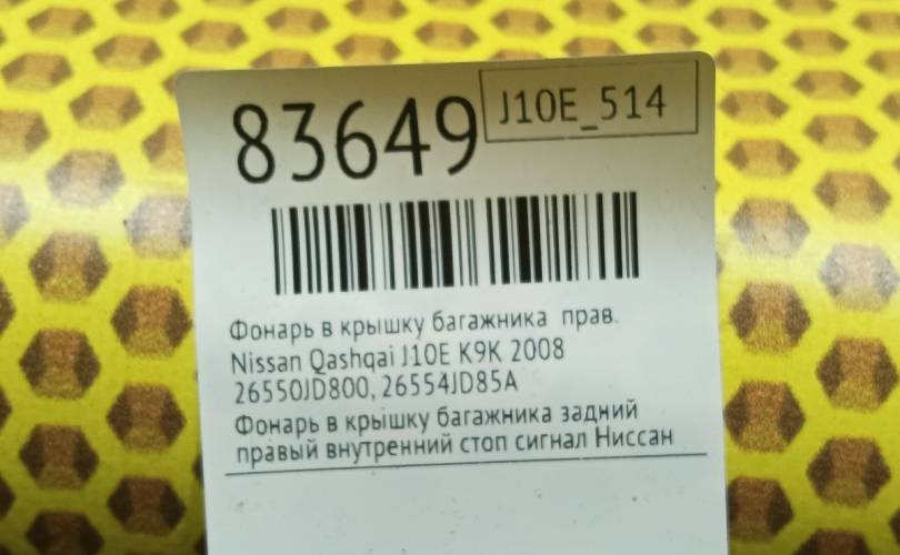 Фонарь крышки багажника Nissan Qashqai 2008 26550JD800 J10E K9K, правый