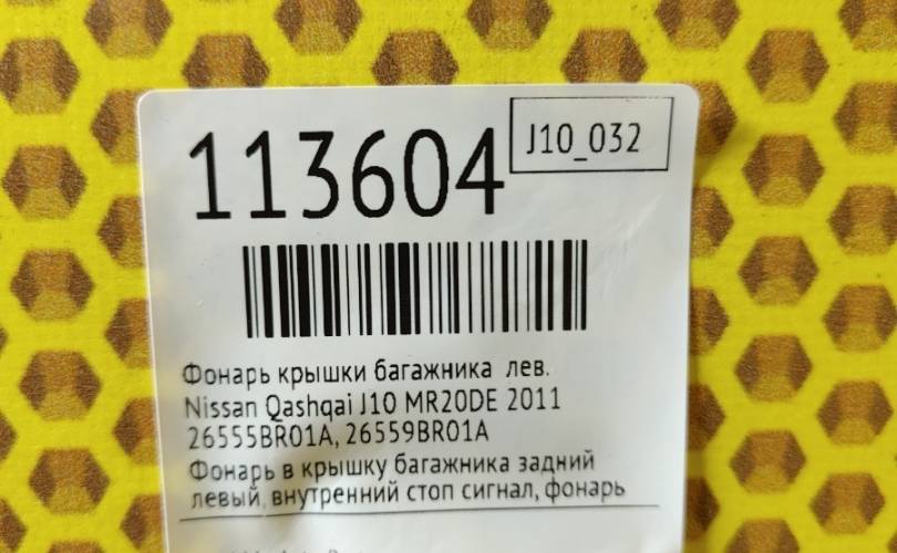Фонарь крышки багажника Nissan Qashqai 2011 26555BR01A J10 MR20DE, левый