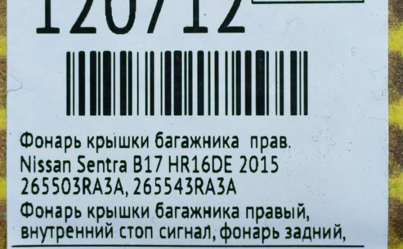 Фонарь крышки багажника Nissan Sentra 2015 265503RA3A B17 HR16DE, правый
