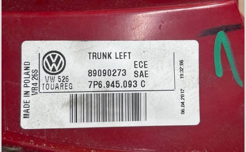 Фонарь крышки багажника Volkswagen Touareg NF задний левый 7P6945093C , 7P6 945 093 C Touareg 2, Туарег 2 НФ 7P6945093,Фонарь крышки багажника Volkswagen Touareg NF задний левый
