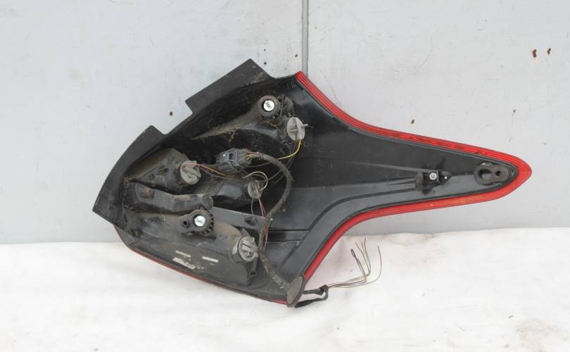 Фонарь задний левый, б/у оригинал с дефектом: в нижней части фонарь разбит, отверстие 5х5 и трещина заклеены скотчем. Подходит для автомобиля Ford Focus III (Форд Фокус 3) дорестайлинг с 2011 по 2015 год выпуска в кузове хэтчбек.