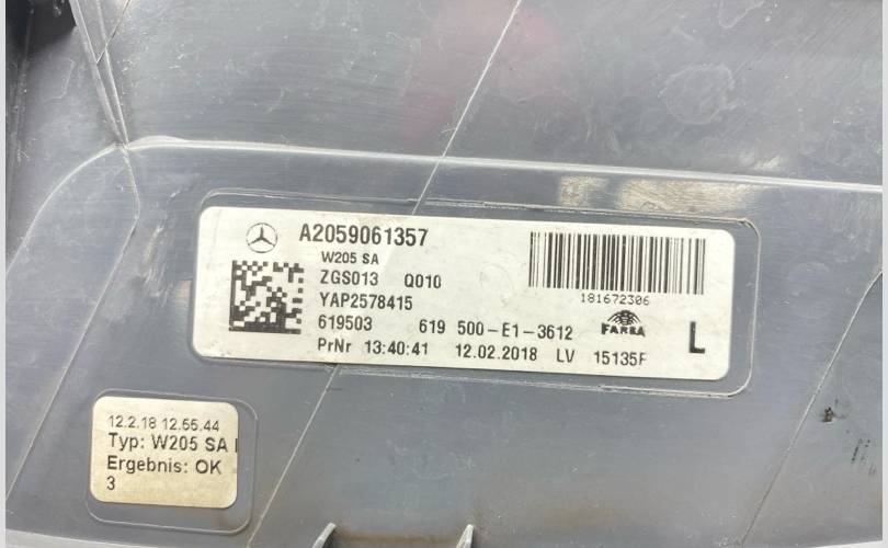 Фонарь MERCEDES-BENZ C-CLASS 2018 A2059061357 W205 3.0 M276 823, задний левый