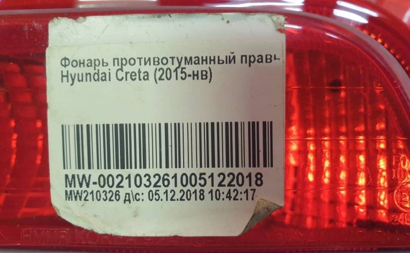 Фонарь противотуманный Hyundai Creta 2016-2021