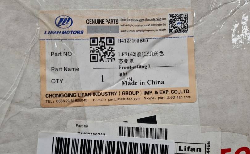 Фонарь салонный в сборе передний для Lifan Solano 620 630 2008-2016