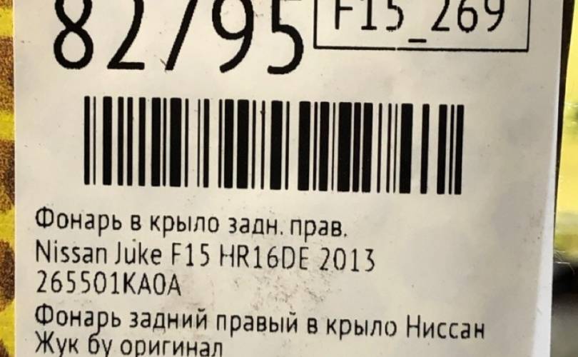 Фонарь в крыло Nissan Juke 2013 265501KA0A F15 HR16DE, задний правый