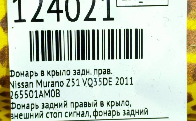 Фонарь в крыло Nissan Murano 2011 265501AM0B Z51 VQ35DE, задний правый