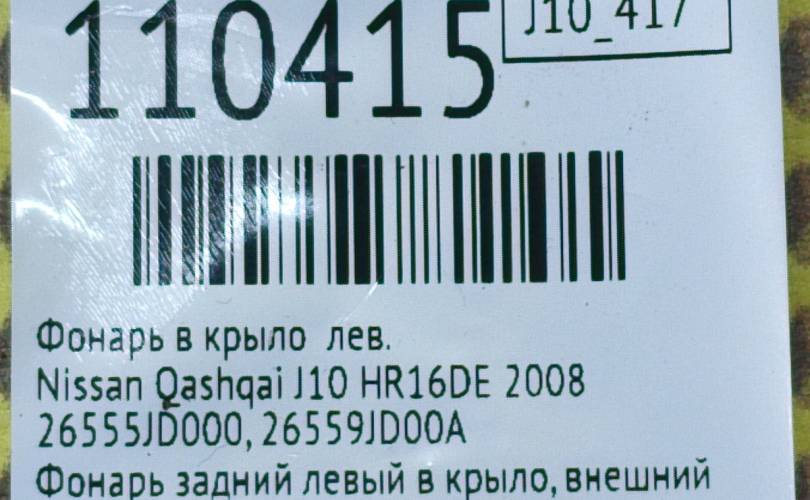 Фонарь в крыло Nissan Qashqai 2008 26555JD000 J10 HR16DE, левый