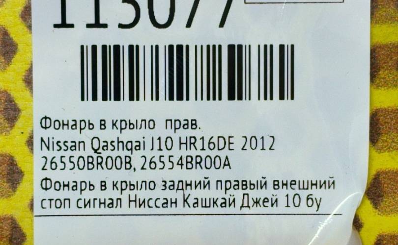 Фонарь в крыло Nissan Qashqai 2012 26550BR00B J10 HR16DE, правый