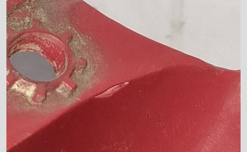 мелкие притёртости на стекле, отломано нижнее правое крепление, трещина на верхнем правом крепление