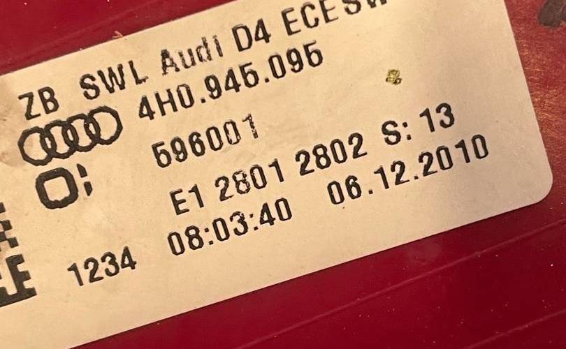 Бензин, 4H0 945 095Фонарь светодиодный задний левыйВ КРЫЛОЕсть два мелких скола смотрите последние фото