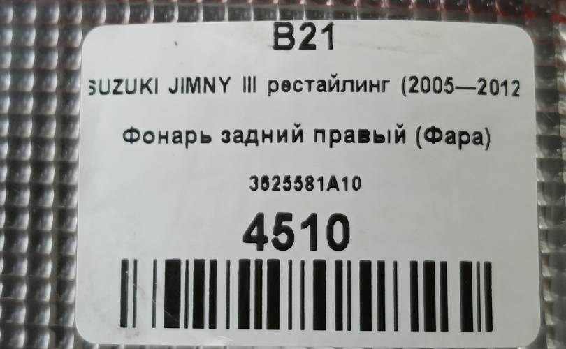 Фонарь задний правый (Фара) на SUZUKI JIMNY III рестайлинг (2005—2012) 3625581A10