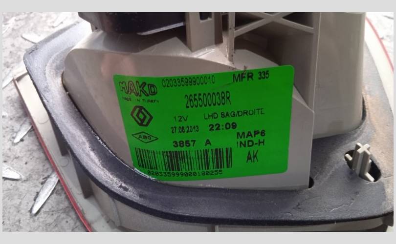Фонарь задний внутренний правый Renault Fluence 2013 265500038R 1