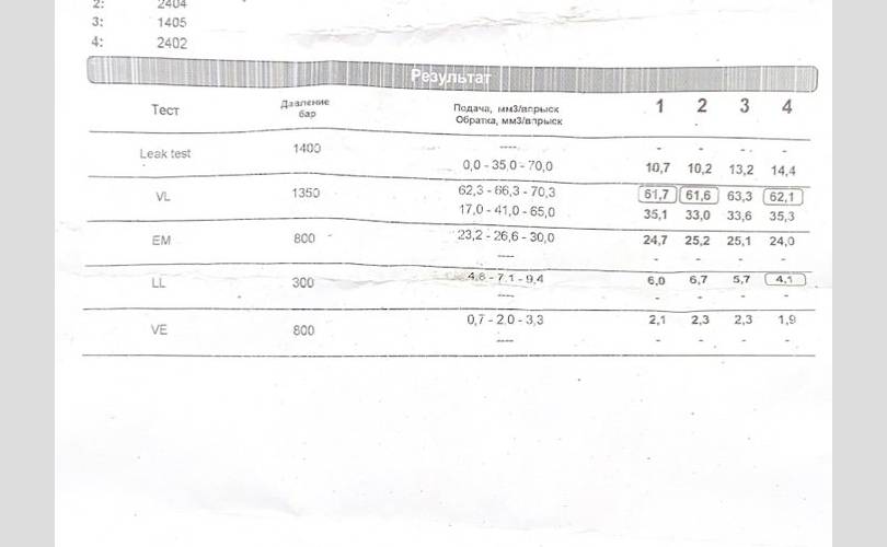 В протоколе данная форсунка указана под номером 2404 (Второй номер в таблице)