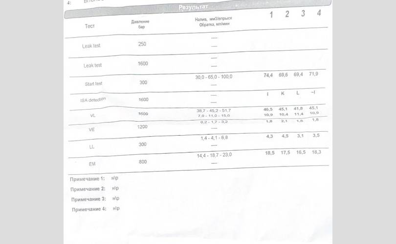 В протоколе данная форсунка под номером 4 (BI1UHSG).