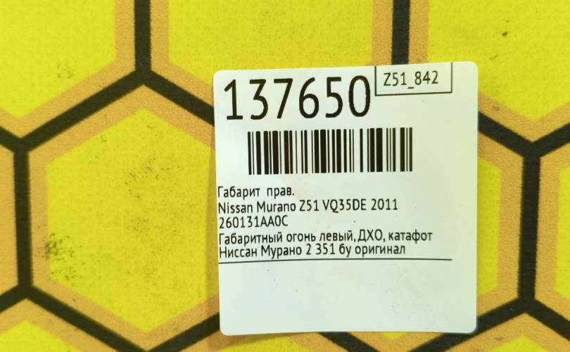 Габарит Nissan Murano 2011 260131AA0C Z51 VQ35DE, правый