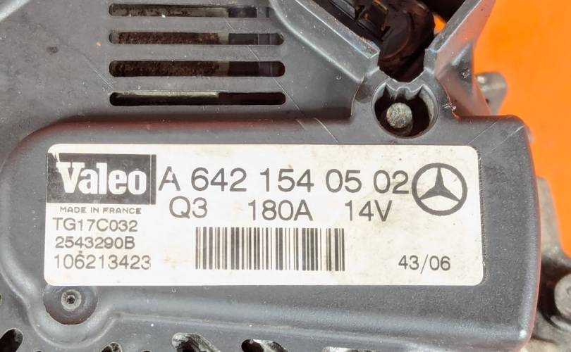 Номер по складу:338235 VALEO. 8 ручьев. 180A. OM642. ДЕФЕКТ ФИШКИ!!!