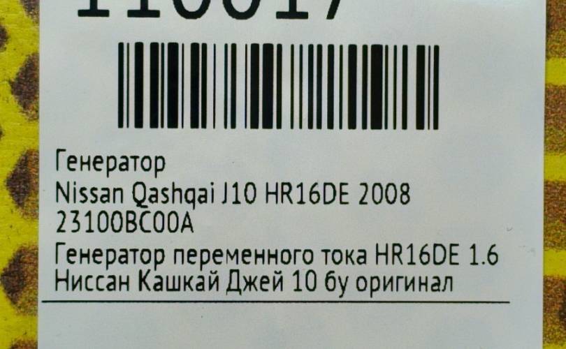 Генератор Nissan Qashqai 2008 23100BC00A J10 HR16DE