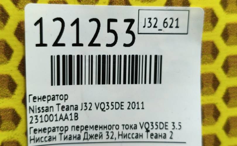 Генератор Nissan Teana 2011 231001AA1B J32 VQ35DE