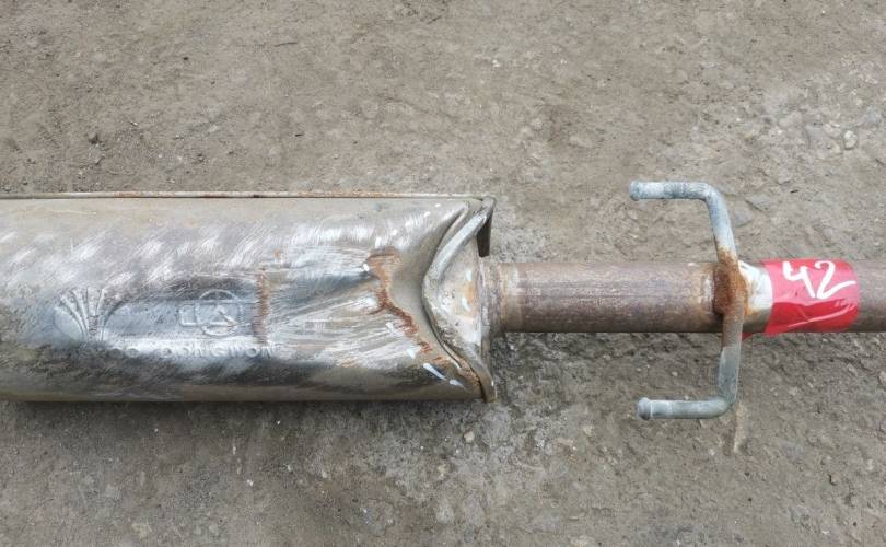 Дефект: Вмятина на средней банке глушителя.