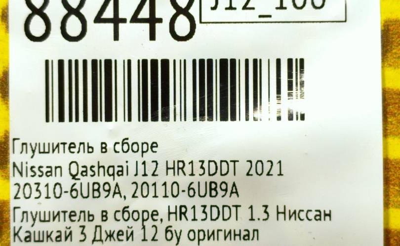 Глушитель в сборе Nissan Qashqai 2021 203106UB9A J12 HR13DDT
